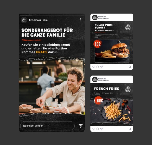 Verpackung der Franchise im Konzept „Smoke & Steel“: vom fesselnden ersten Eindruck bis zur abgeschlossenen Anfrage.